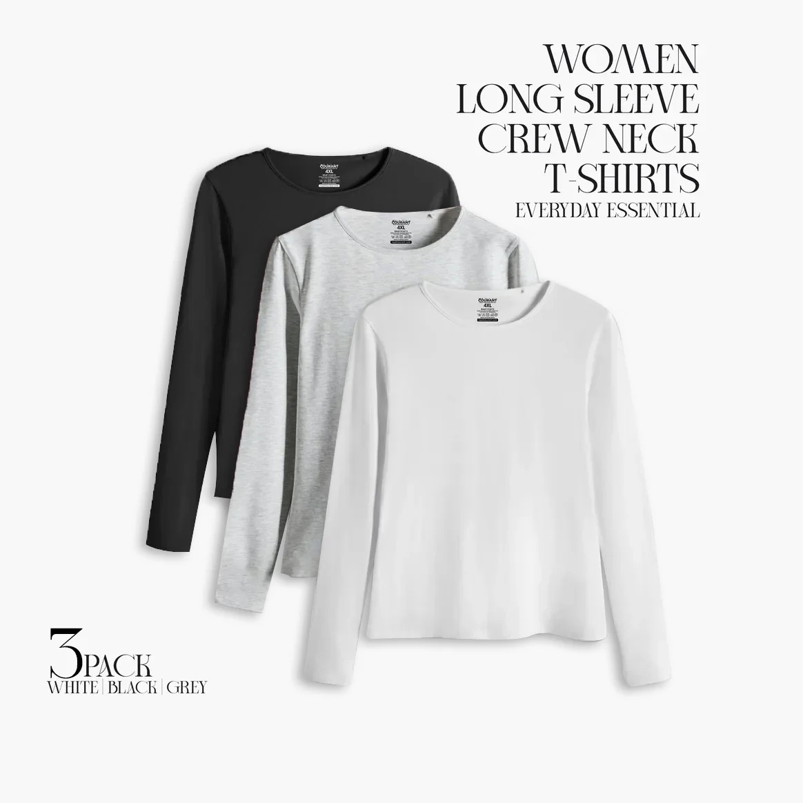 Crafted from stratchy cotton, our regular-fit white, black, grey long-sleeve crew neck top is a soft and breathable choice for any casual day outfit. This staple piece effortlessly combines comfort and style, making it a must-have for your wardrobe. Style it with your favourite jeans, skirts, Leggings or layer it under a chunky knit for a trendy fit.